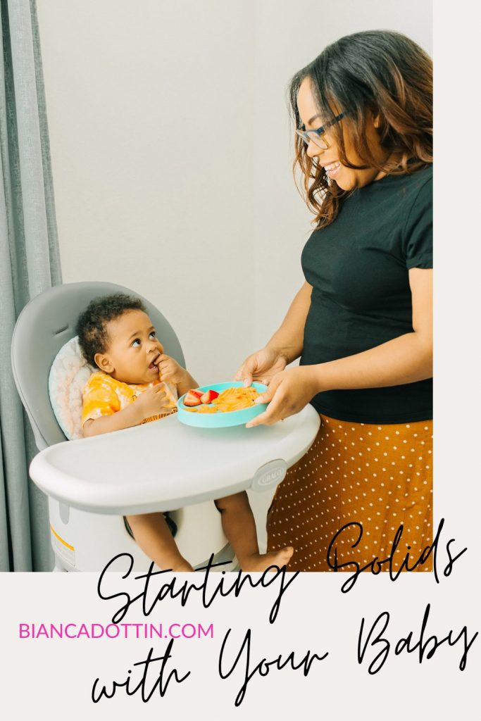 The first thing you want to do before starting your baby on solids is make sure they’re ready. If they’re showing cues like reaching for your food or getting hungry in between meals then they’re probably ready for solid foods. Trevor was adamant about wanting to start solids. He would always reach for our food when we were eating, he was hungrier in between bottles and the milk just didn’t seem to be doing it for him anymore.